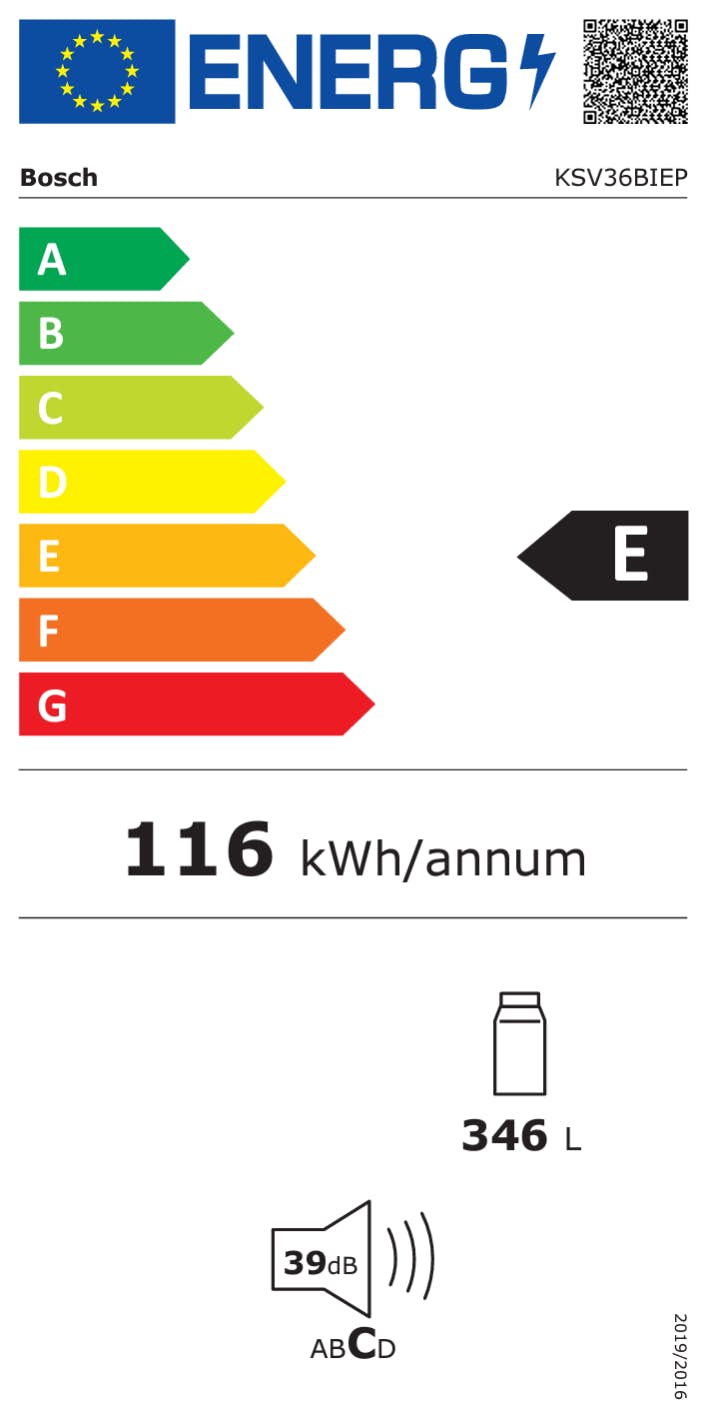 Kylskåp Bosch KSV36BIEP Serie 6 med Display är ett rymligt kylskåp på 346 liter med funktioner som SuperCooling, EasyAccess-hylla, fingeravtrycksbeständigt yttre samt en låg ljudnivå på endast 39 dB.