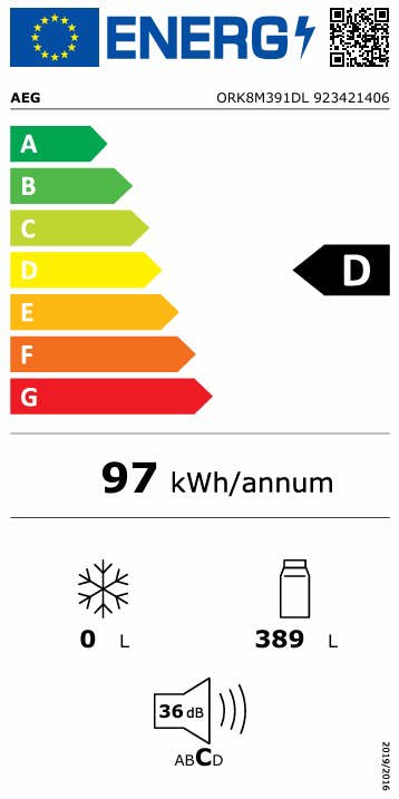 AEG 8000 fristående kylskåp är energiklassat som D och har en låg energiförbrukning på endast 97 kWh per år. Kompressorn kommer dessutom med en 10-årig garanti för extra trygghet.