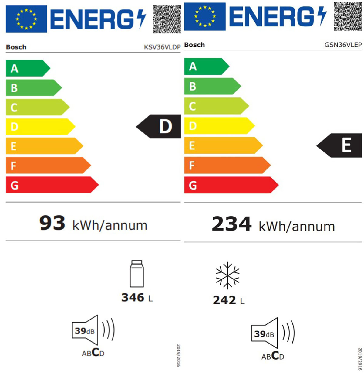 Fördelar: Kyl/Frys Paket Bosch Serie 4 KSV36VLDP + GSN36VLEP Rostfri 186 cm