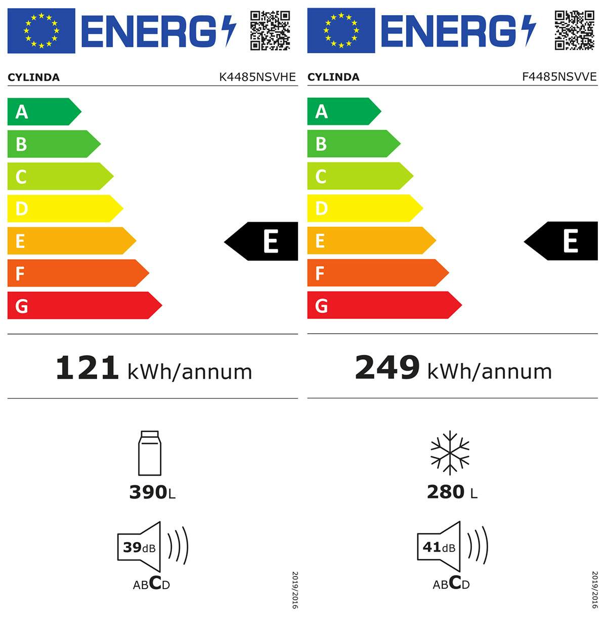 Cylinda K4485SVHE och F4485NVSVVE är ett kyl- och fryspaket som ger dig den bästa möjliga kombinationen av kylning och förvaring för dina matvaror. Båda dessa enheter är utformade med tanke på användarvänlighet och bekvämlighet, och erbjuder stora och rymliga kompartiment som ger dig tillräckligt med plats för att lagra allt från färska grönsaker till dina favoriträtter. Med sina smarta funktioner och energieffektiva design håller dessa enheter maten sval och fräsch, medan de också håller din elräkning nere.