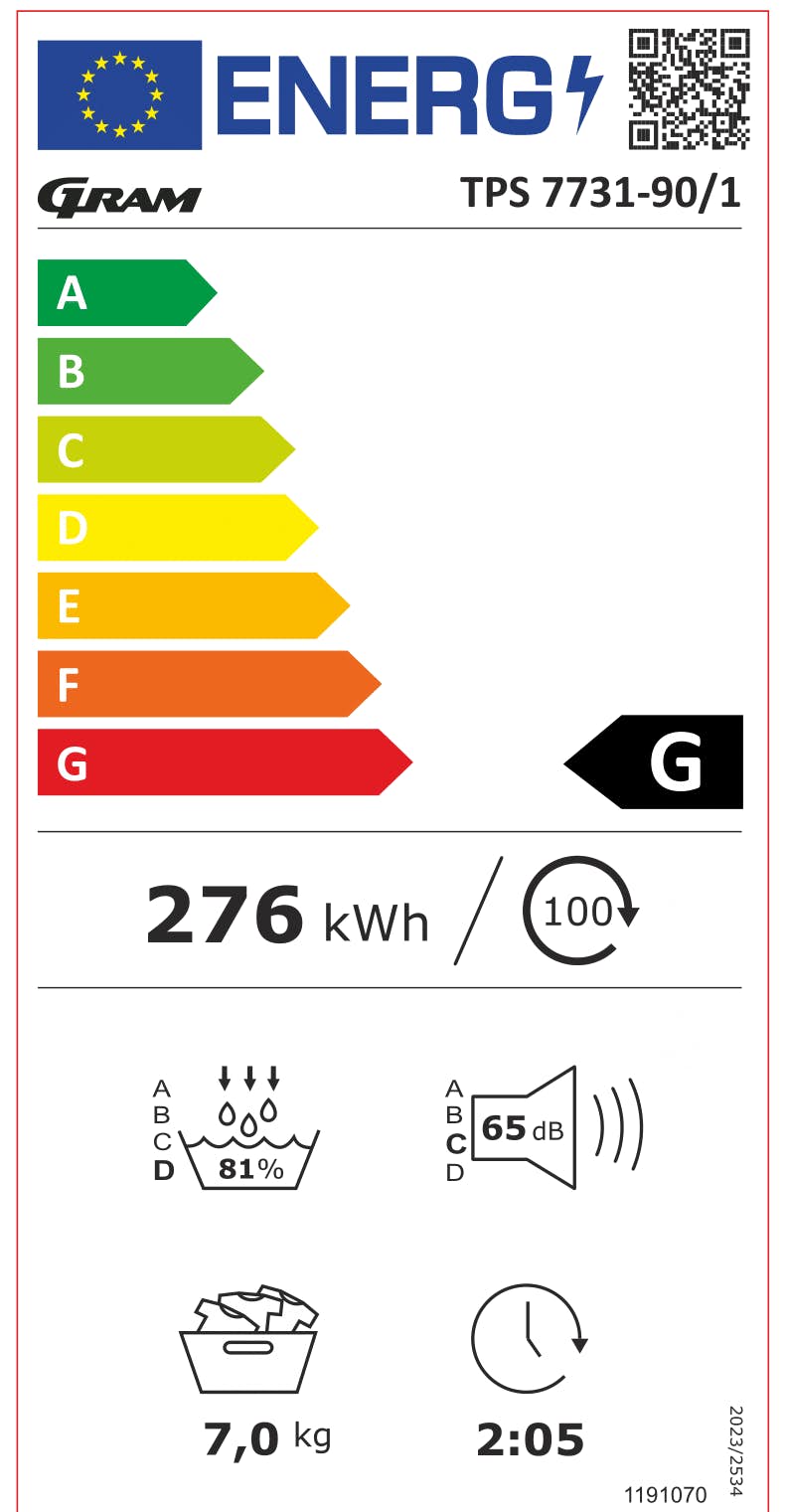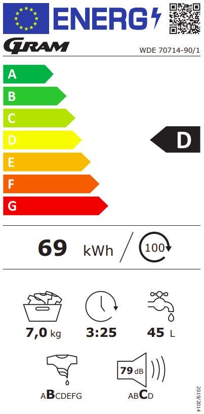 Tvätt-och Torkpaket Gram WDE 70714-90/1 TPS 7731-90/1
