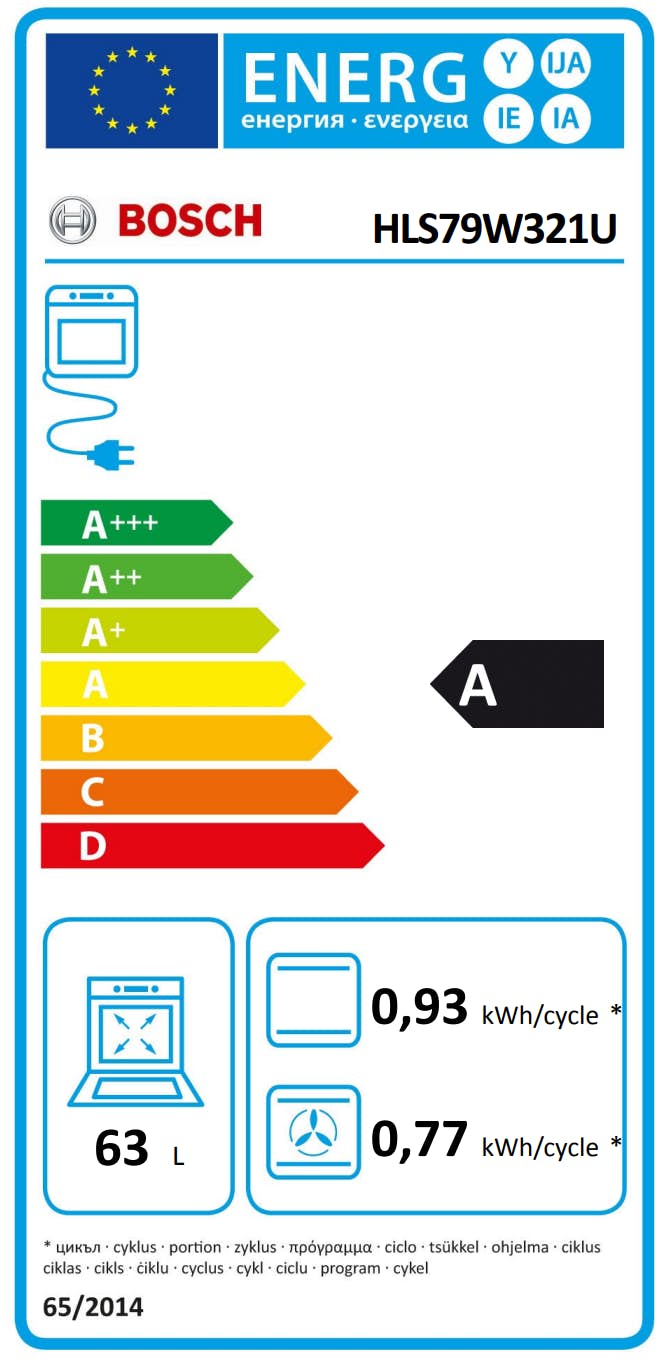 - Användbar volym (av hålrum) - NY (2010/30/EC): 63 l