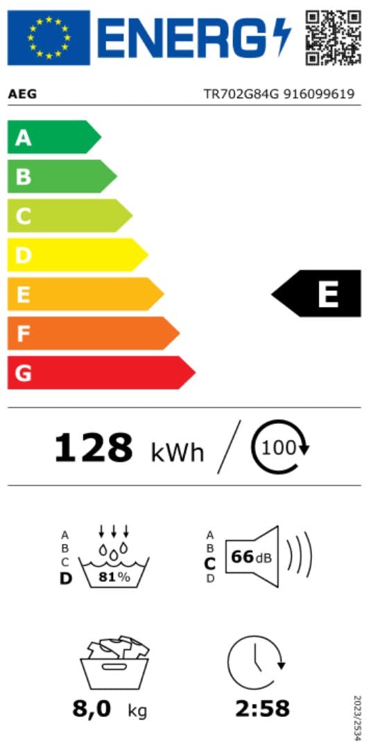 SensiDry® TR702G84G med Energisparande Teknik Vit