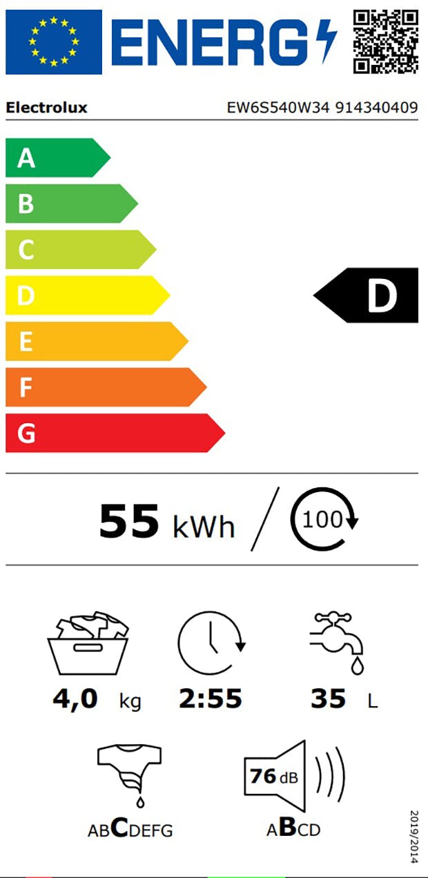 Fördelar: Frontmatad Tvättmaskin Electrolux EW6S540W34 Slim Kompakt med SensiCare System