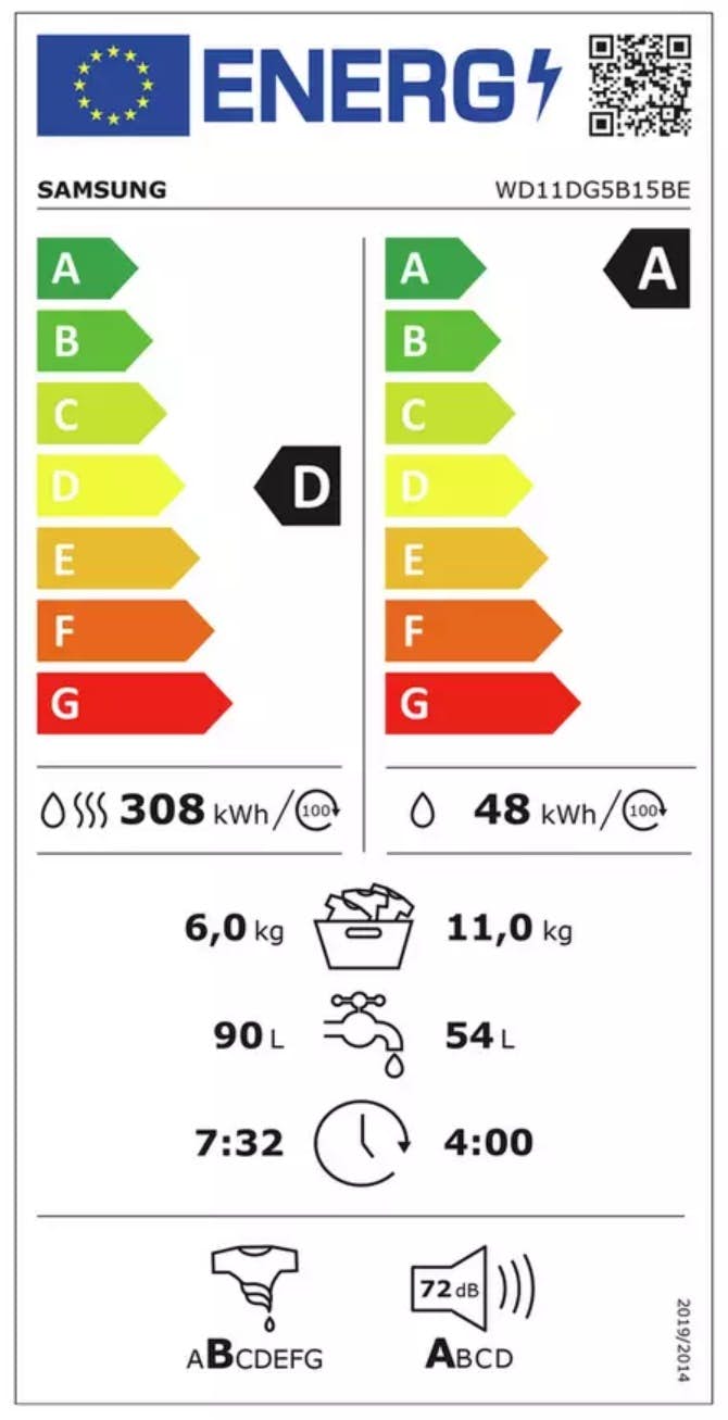 Kombinerad Tvättmaskin / Torktumlare Samsung9000 Series - WD11DG5B15BEEE
