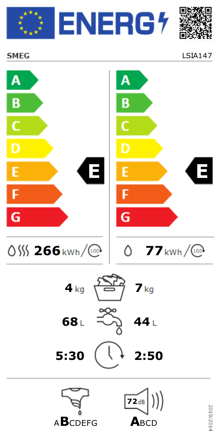 - Årlig energiförbrukning (tvätt+tork): 1120 KWh