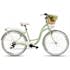 Lyxig damcykel med sportiga finesser. Enkelt på- och avstigning samt fjädrad sadel för användarkomfort.