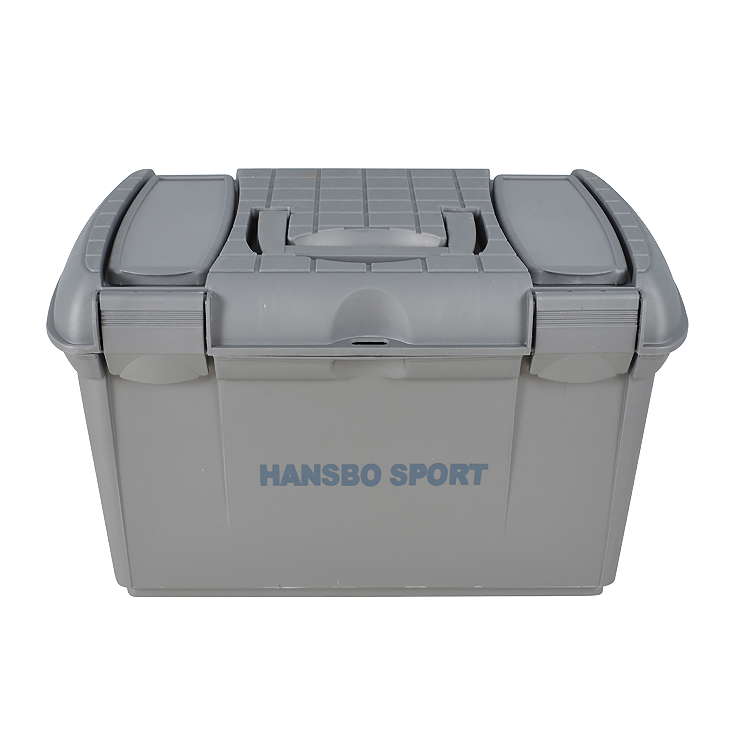 Praktisk ryktbox i slagtålig plast, med en mängd fack som gör det enkelt att förvara borstar och andra vårdprodukter.
