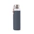 Silikonöverdragen, greppsäker glasflaska från Black+Blum som rymmer 600 ml. Skruvkork av rostfritt stål säkrad med fallskärmsrep.