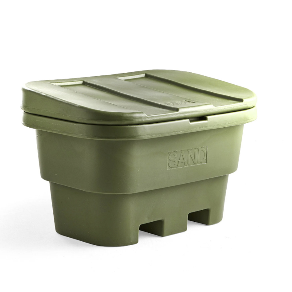 Prisvärd sandlåda i robust konstruktion. Lådan är 100% återvinningsbar. Locket är tillverkat av dubbellaminat med luftspalt vilket minskar risken för kondens, vilket annars kan leda till isbildning. Det minimerar risken att innehållet fryser. Inga beslag som rostar.