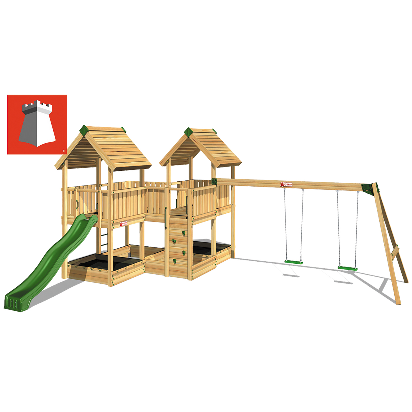 Oavsett antalet barn och det tänkta området kan du hitta ett lämpligt lekplatsprojekt från Hy-Land. Alla projekt levereras med den kraftiga gröna Hy-slide (TM) rutschbanan