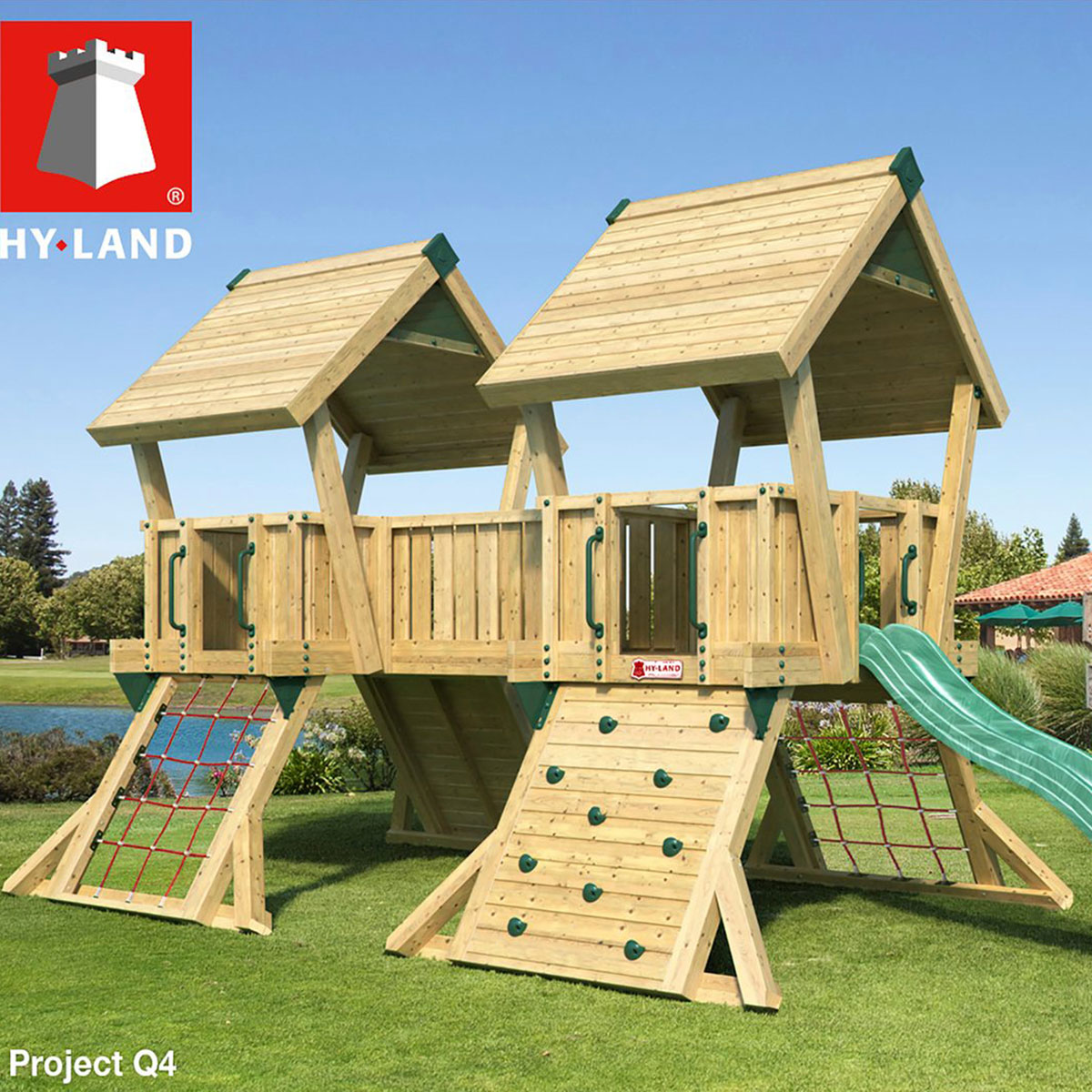 Oavsett antalet barn och det tänkta området kan du hitta ett lämpligt lekplatsprojekt från Hy-Land. Alla projekt levereras med den kraftiga gröna Hy-slide (TM) rutschbanan