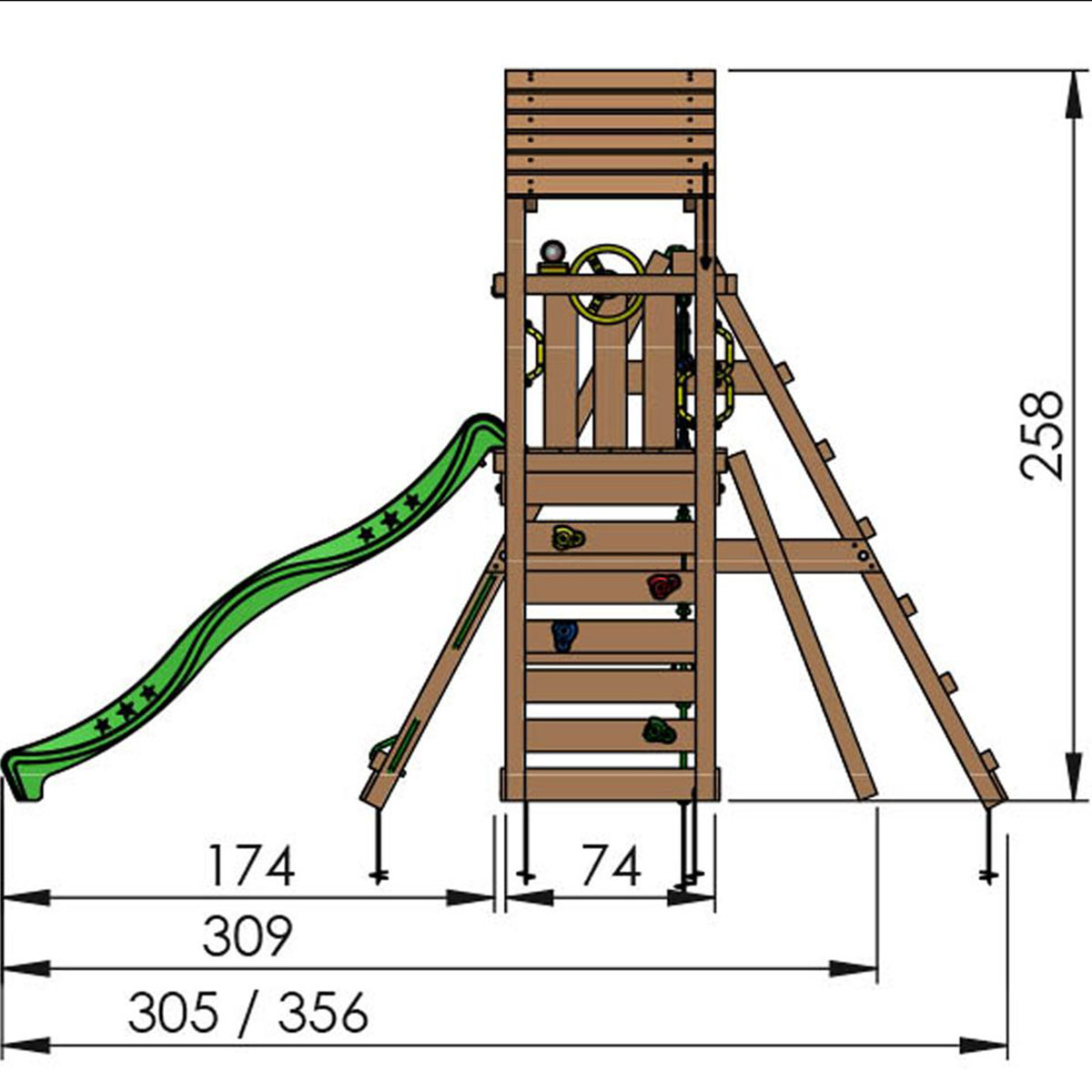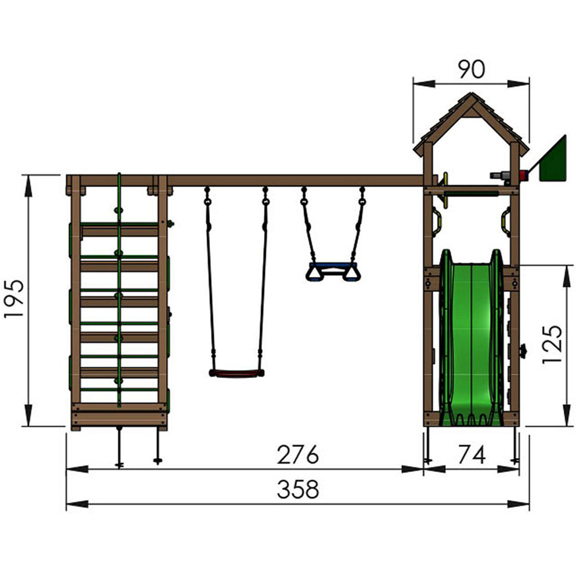 | Modell | Klätterställning, 2 gungor och mörkgrön rutschkana |