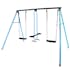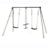 Är CE- och tüv- godkänd för lek i den privata trädgården. Två enkelgungor och en dubbelgunga. Kraftiga sitsar med rundade kanter av uv-beständig plast. Max belastning per sittplats 50 kg. Stabilt stålrörsstativ med en hel bom och hela ben samt svetsade benfästen. Säkra klämskydd. Fotplattor för alternativ förankring. Enkel att montera. Gungan är designskyddad.