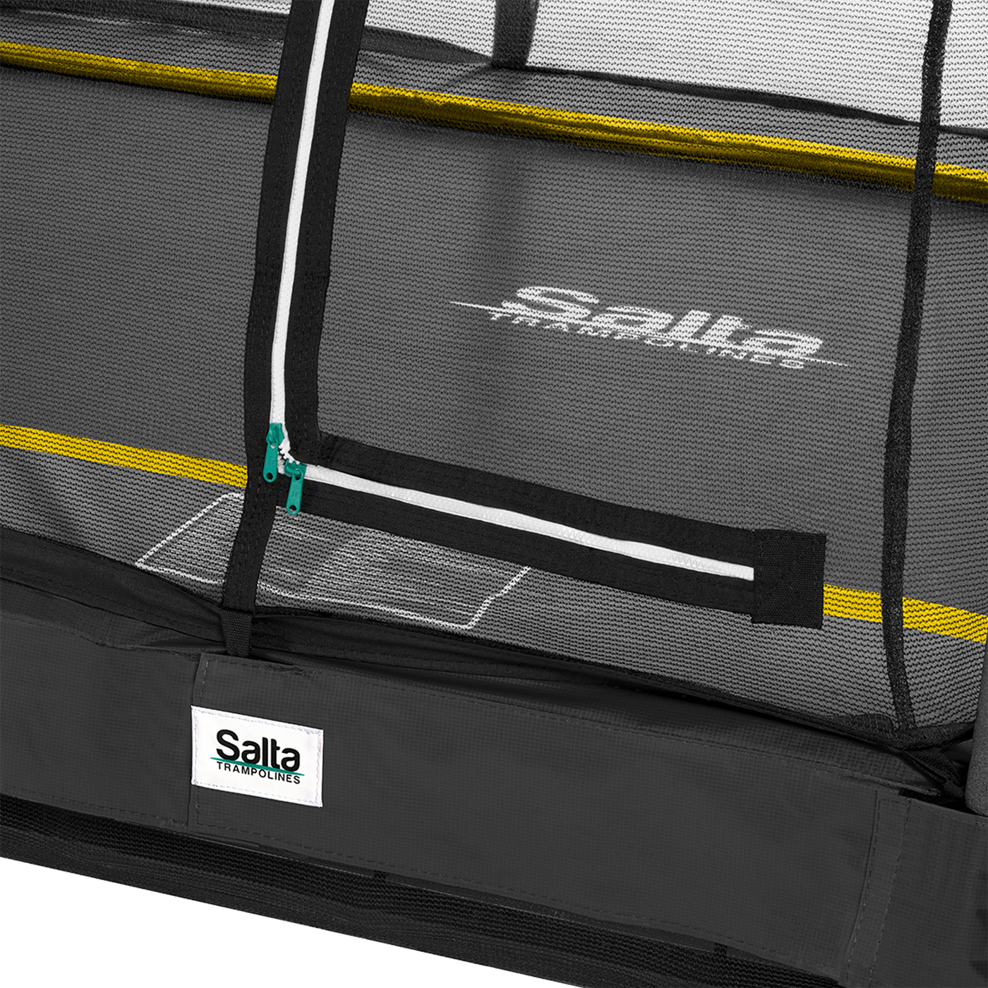 Studsmatta Salta Comfort Edition Nedgrävd Rektangulär är en nedgrävningsstudsmatta. Den vackra designen av denna studsmatta passar perfekt till alla omgivningar och är utvecklad i enlighet med de nyaste standarderna, vilket gör den extremt säker. Stålramarna i den slitstarka Salta Comfort Edition Inground är galvaniserade och försedda med en svart, blank beläggning.