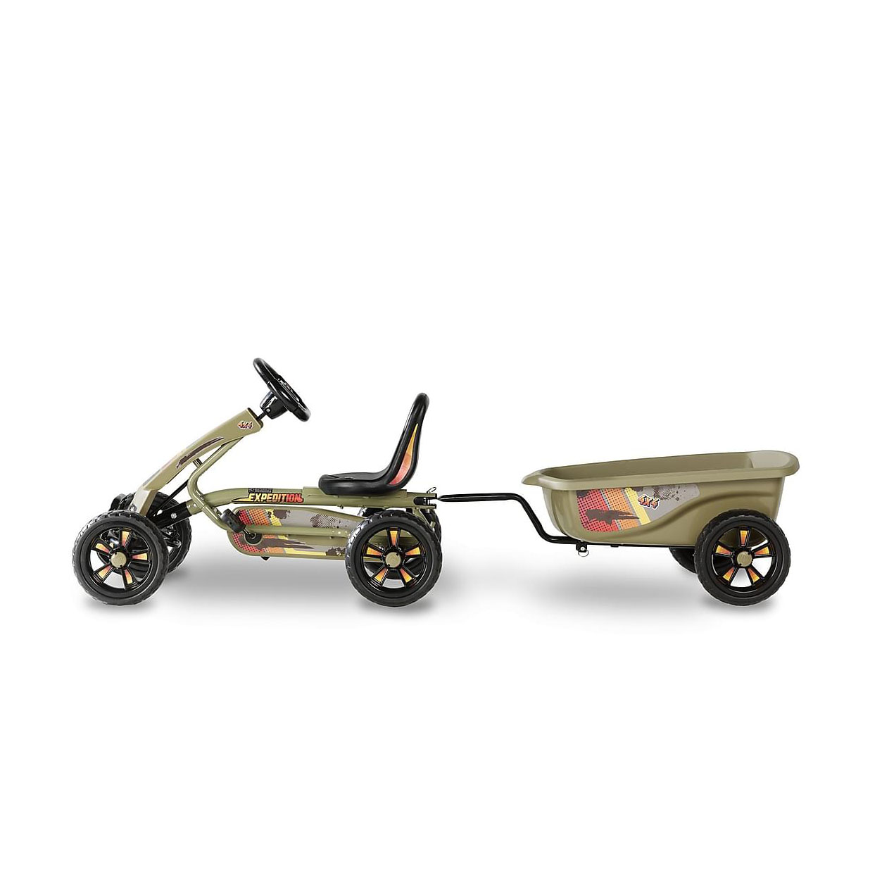 Släpet som ingår är enkelt att sätta på och ta av, även för de yngsta. Med det stora, stabila flaket kan du frakta upp till 10 kg.