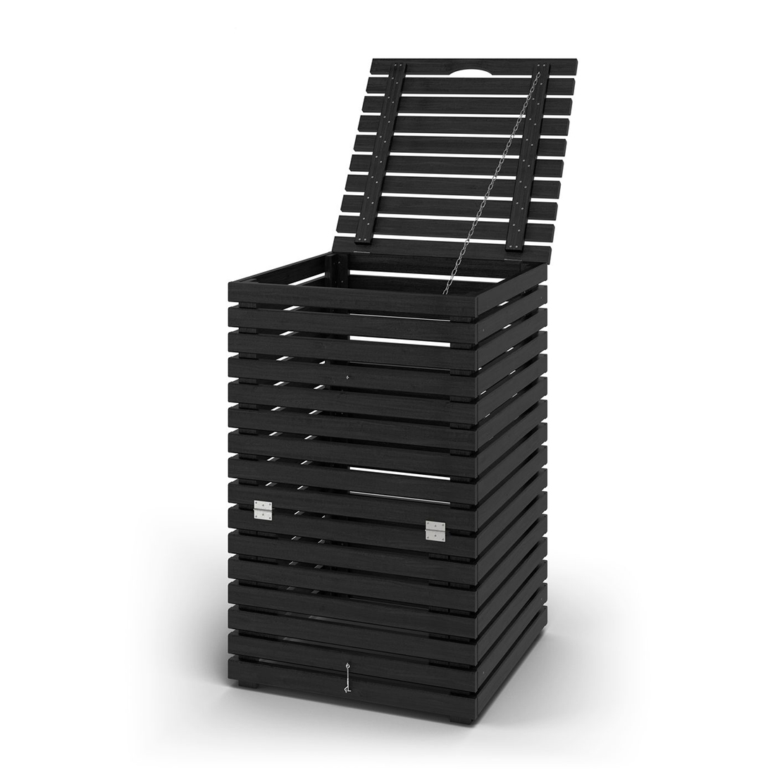 Kompostbehållare från Jabo i Horizont-serien. Behållaren har lock med rostfria gångjärn och en praktisk lucka nedtill för att tömma kompostens avfall nedtill.