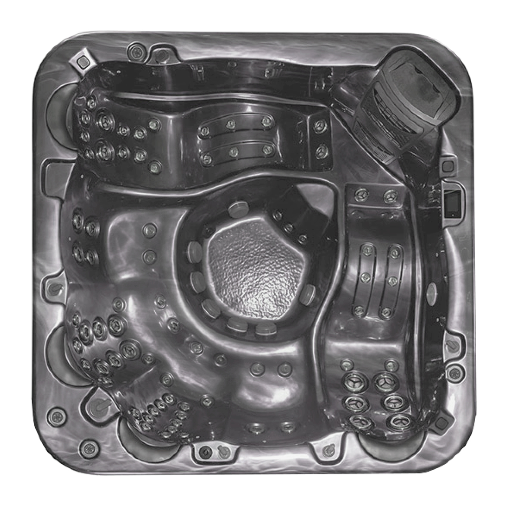 Spabad Swebad Akvamarin 79 Jets är ett massagemonster utrustad med ett ljudsystem innehållande tre högtalare och en subwoofer. Här är jets, nackkuddar, dryckesbrickor och vattenlinje belyst med LED.