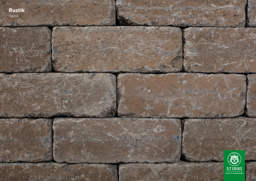 Rustik block ger en stabil och tydlig inramning av den lagda ytan. Precis som sin släkting markstenen Rustik är blocket trumlat och finns i matchande färgskala. Blanda normal-, halv- och multiblock för en varierad mursida. I serien finns också ett radieblock som gör det enkelt att bygga svängda murar. Blocket fungerar även till små nivåupptagande trädgårdstrappor, terrasseringar och låga murar. Multiblocket kan användas vid murbygget, men fungerar också bra som kantsten.