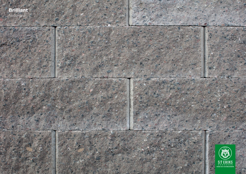 Brilliant är ett stödmursblock med rakklippt front. Muren går att bygga på två sätt, med svag bakåtlutning (4°) eller utan bakåtlutning (0°).Om lutning önskas används en distans.
