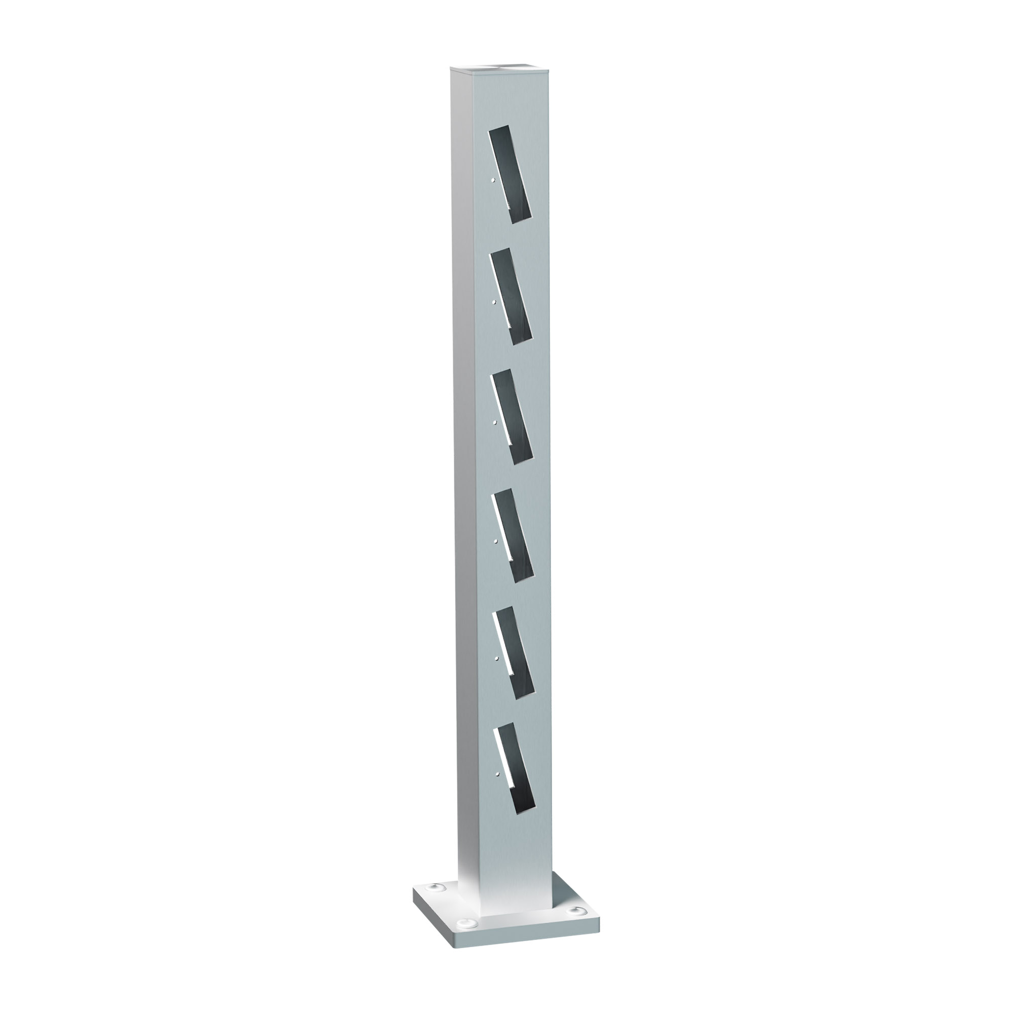 Avståndet mellan marken och första regeln är 10 cm. Avståndet mellan reglarna är 1,5 cm. Hålen är 23 X 97mm. Tänk på att beställa rätt stolptyper för ditt ändamål (mellanstolpar, hörnstolpar, ändstolpe höger eller ändstolpe vänster). För ändstolpe så titta alltid inifrån och ut på staket för att välja höger eller vänster. Stolphatt går att få i svart plast eller av aluminium i valfri kulör. Glöm inte att beställa en stolpfot till varje stolpe. Köp valfritt impregnerat virke om 22 X 95 mm hos din lokala bygghandlare. Säkerställ att virket inte har svällt för mycket (det försvårar monteringen).