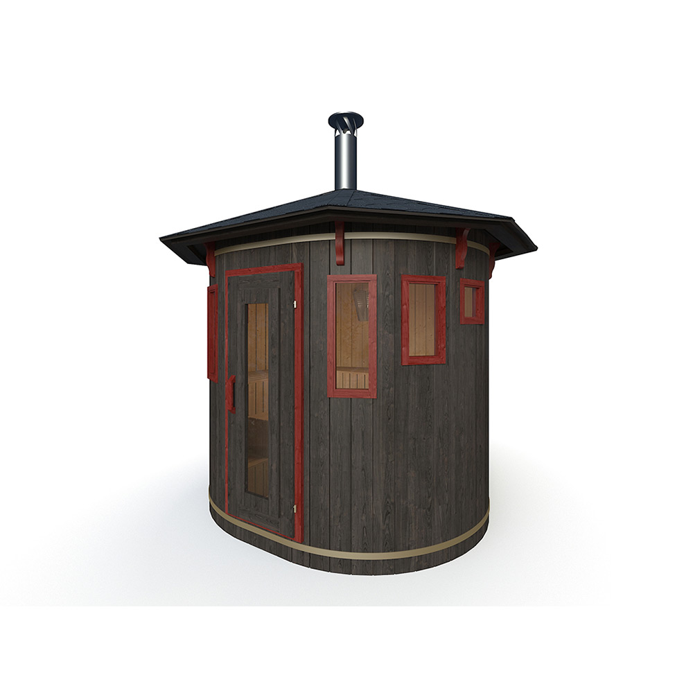 Jobbar du hårt och känner dig trött kan ett bastubad också hjälpa dig att lindra detta. Förutom att en rund bastu ser trevlig ut och är mysig att sitta i, ger den runda formen en stor fördel gentemot de fyrkantiga modellerna. Denna platsbesparande bastu modell är en perfekt uppfinning för er som vill placera sin bastu på en terrass eller i en mindre gård. Bastu tunna VERTIKAL - är mycket kompakt och upptar inte så stort utrymme. Trots sin mindre storlek levererar bastun likväl en högkvalitativ upplevelse. Bastu rymmer en liten familj, ett företag eller ett gäng nära vänner. Bastun ger en mysigt och bekvämt känsla på grund av att den vedeldade kaminen är placerad i mitten av bastun och bänkarna följer väggarna. Den nuvarande modellen är utrustad med en låsbar ytterdörr med stort fönster, vilket bidrar med ljus in i interiören och skapar en underbar och bekväm atmosfär. Det är sagolika träet för konstruktionen tillsammans med koniska taket kommer definitivt att bidra med att försköna landskapet!