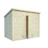 Färdiga väggelement i nordisk gran med en enkel pardörr.