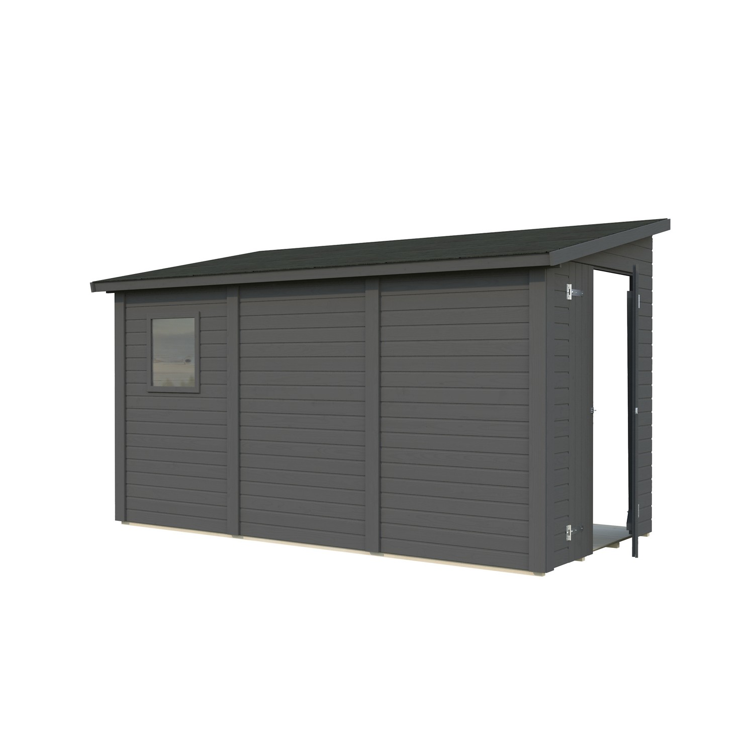 Förråd Mia från Palmako av 16 mm tjocka prefabricerade väggblock och en enkel pardörr. Det är ett litet praktiskt förråd som du placerar mot en befintlig vägg. Med denna lilla redskapsbod skapar du på ett smidigt sätt lite extra utrymme för dina sportartiklar, trädgårdsredskap eller uteleksaker. Den enkla designen gör att förrådet kan placeras och anpassas för att smälta in i den befintliga miljön. Stugan är inte snözonklassad - håll därför taket rent från större mängder snö.