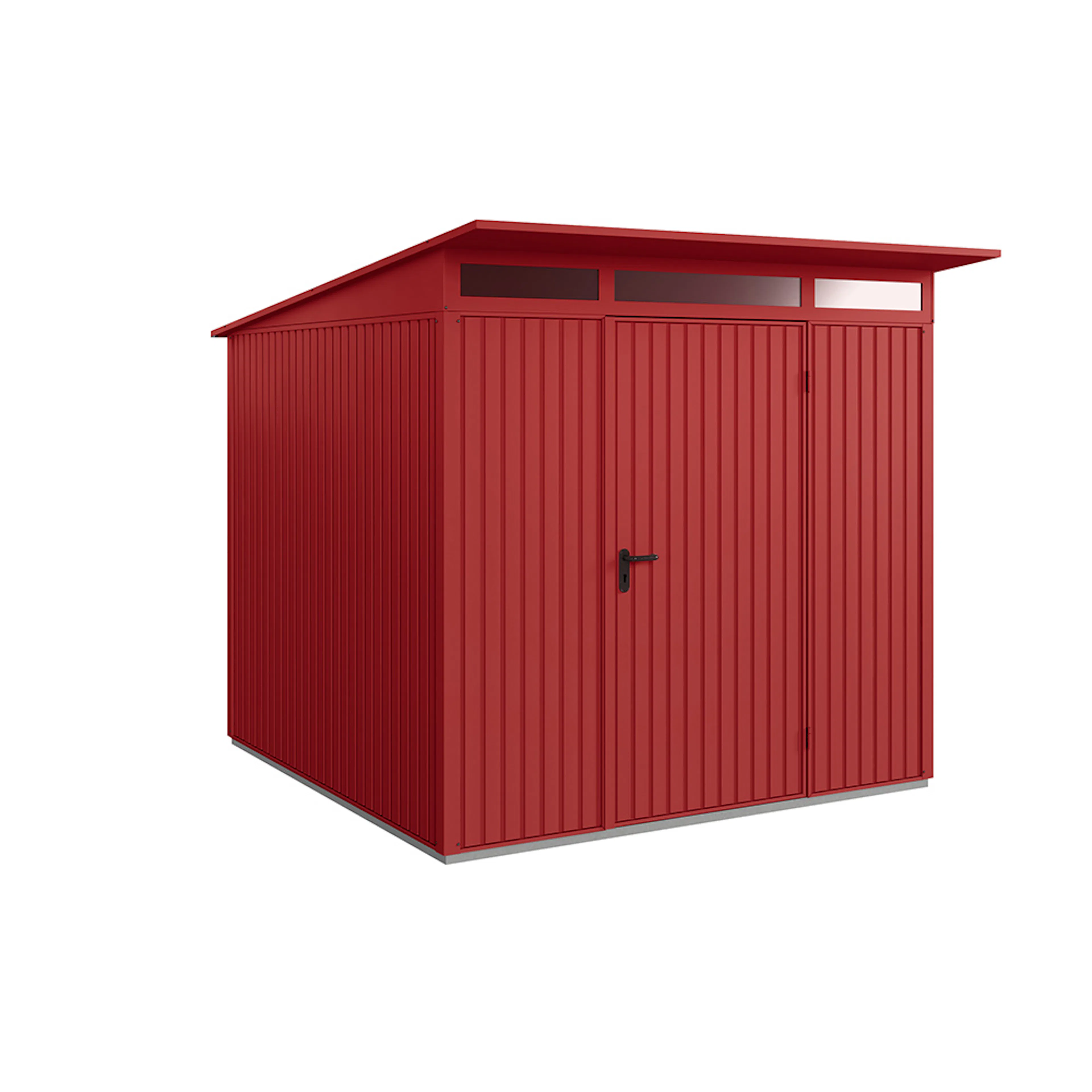 Redskapsbodarna får sin höga stabilitet och slitstyrka av dess stålkonstruktion och den höga materialtjockleken. Grundram i aluminium ingår alltid som standard. Alla skruvar och gångjärn är förzinkade och därmed skyddade mot oxidation. Redskapsbodarna är som standard utrustade med pålitliga dörrlås och högkvalitativa gångjärn. Modellen Modern levereras med integrerat överljus i akrylglas för invändigt dagsljus. Som tillval erbjuds ett stort antal hyllsystem i form av justerbara hyllor, cykelhållare, redskapshållare, belysning, aluminiumgolv mm.