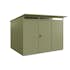 Det finns många fördelar med en redskapsbod i metall. Den galvaniserade och pulverlackerade stålplåten håller formen och kräver lite underhåll, är både väder- och mögelbeständig. Plåten som används består till 25% återvunnet material och redskapsbodarna samt vedbodarna är 100% återvinningsbara.