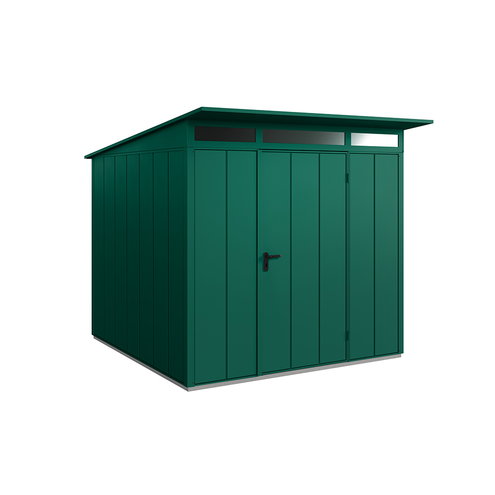Det finns många fördelar med en redskapsbod i metall. Den galvaniserade och pulverlackerade stålplåten håller formen och kräver lite underhåll, är både väder- och mögelbeständig. Plåten som används består till 25% återvunnet material och redskapsbodarna samt vedbodarna är 100% återvinningsbara.