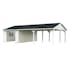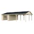 Palmakos garage Roger 19,0+33,2 m2 med solid 44 mm knuttimmervägg är inte bara den perfekta lösningen för att hålla din bil säkert inomhus, utan den har också funktionaliteten att behålla dina familjefordon under den skyddande carporten, samtidigt som det ger extra utrymme för dina förvaringsbehov. De generösa måtten gör att du kan parkera din bil bekvämt och har extra utrymme för verktyg, cyklar och andra föremål.