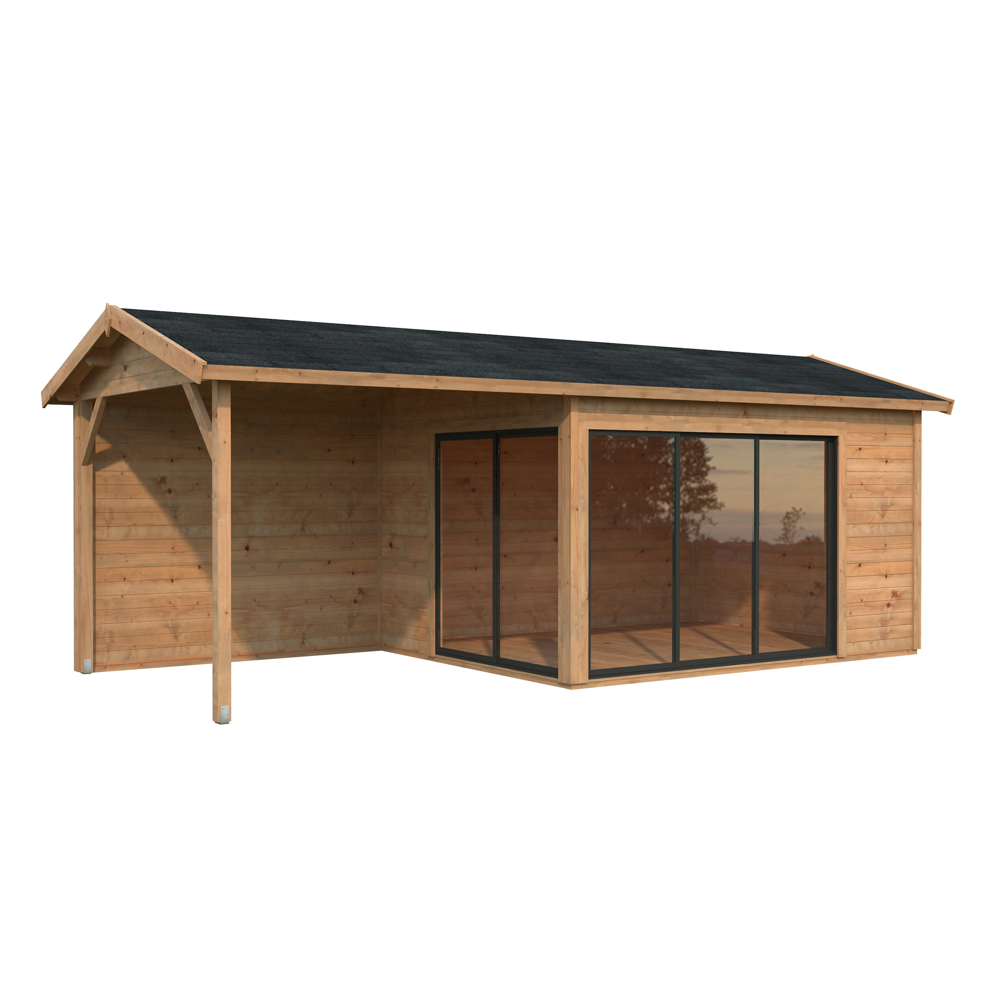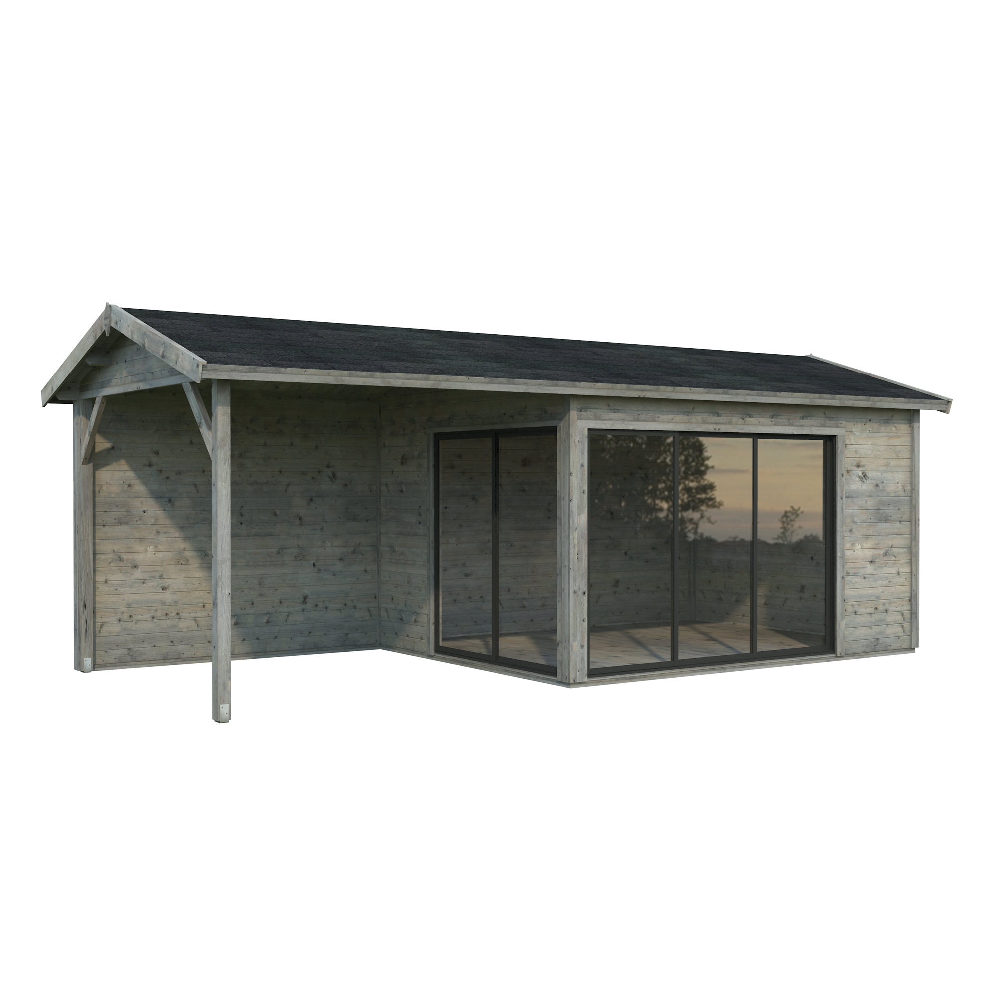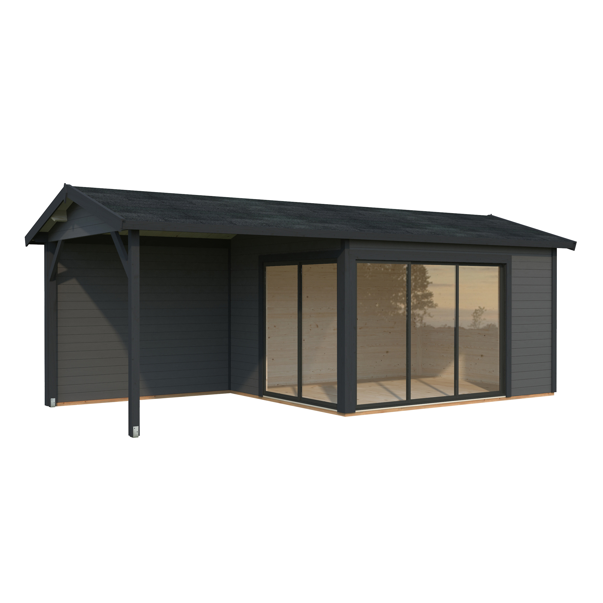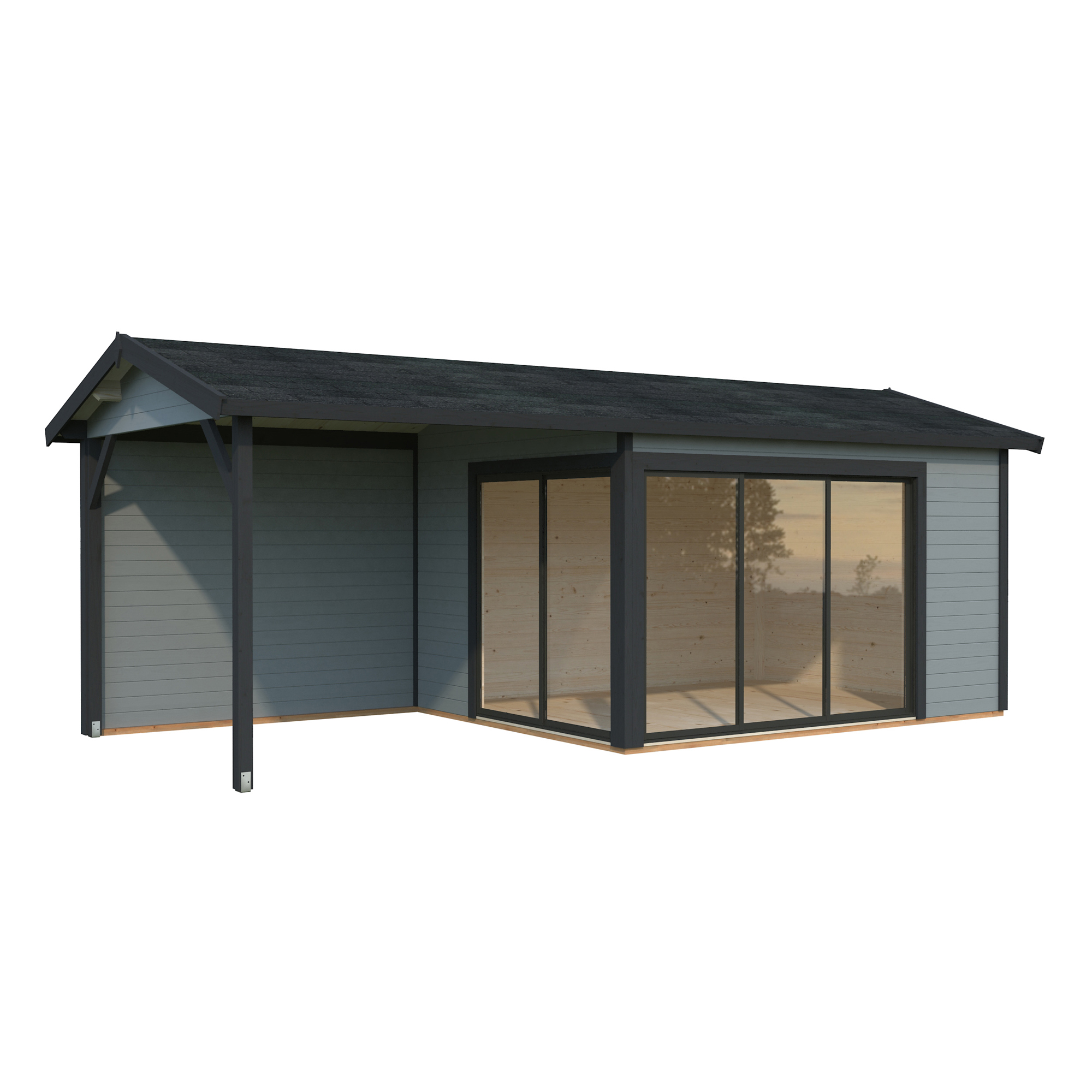 Palmakos stuga Amanda 11,2 + 7,8 m² Slide är ett mångsidigt och modernt trädgårdshus som passar perfekt för olika användningsområden. Med sina 44 mm tjocka väggar och sadeltak erbjuder den ett stilrent utseende. Med sina 11,2 m² ger den gott om utrymme för en rad aktiviteter, oavsett om du vill använda den som ett hobbyutrymme, för växter, konst, hantverk eller som en verkstad. Den kan även omvandlas till ett hemmakontor, en yoga- eller träningslokal, eller en mysig samlingsplats för vänner och familj.