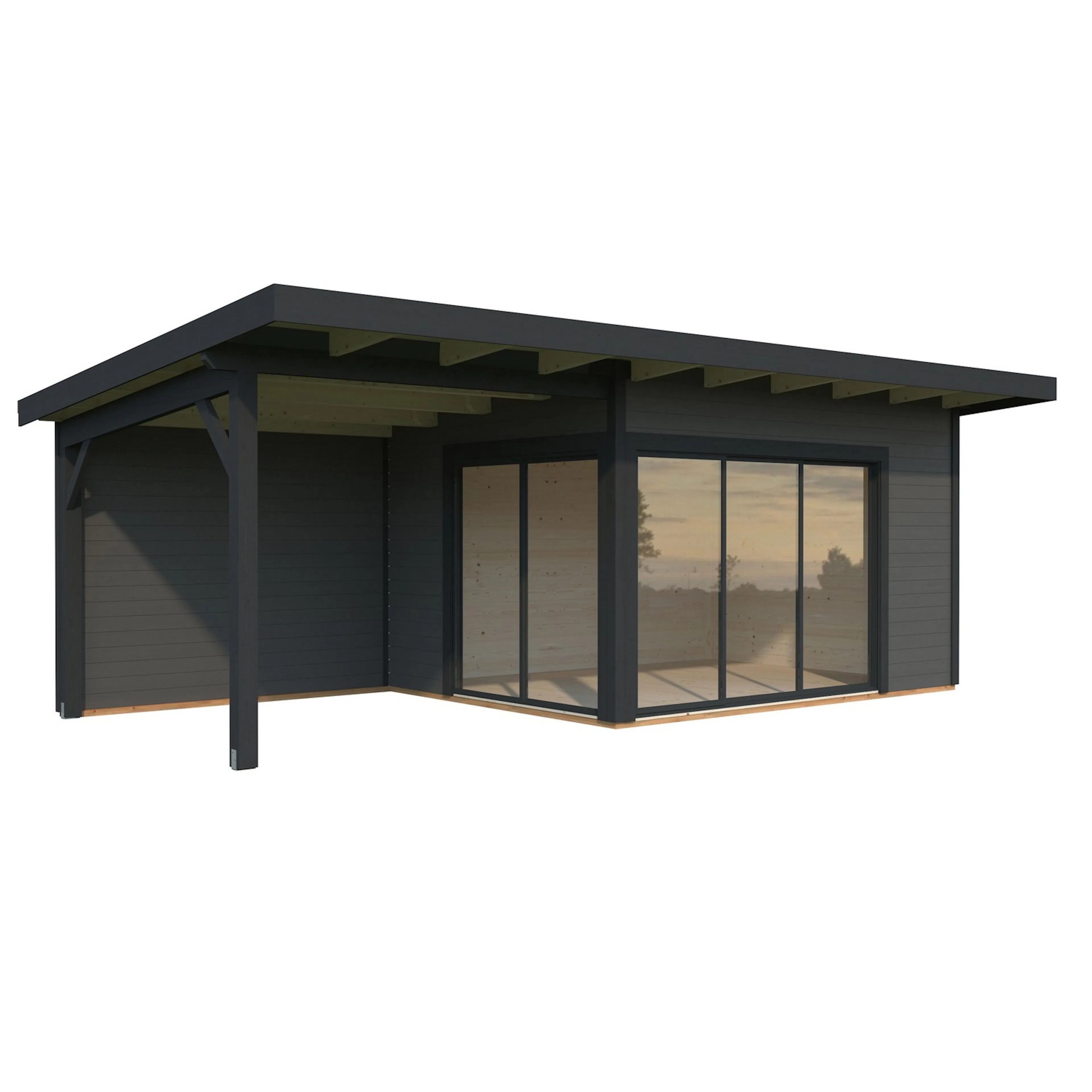 Stuga Palmako Andrea 20,0 m2 (inv. 11,2 m2)Målad Grå med Slide 1-lagers glas