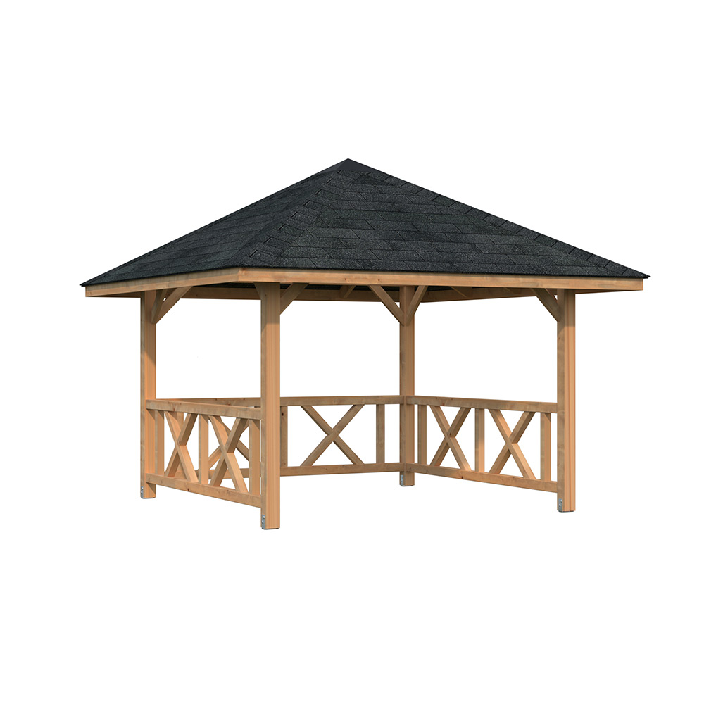 Stugan är tillverkad av långsamväxande nordisk gran, med 120x120 mm starka limträstolpar och 19 mm takbrädor. Ett slitstarkt och högkvalitativt material som är särskilt anpassat till de tuffa svenska väderförhållandena. Levereras som byggsats inklusive alla fästelement.