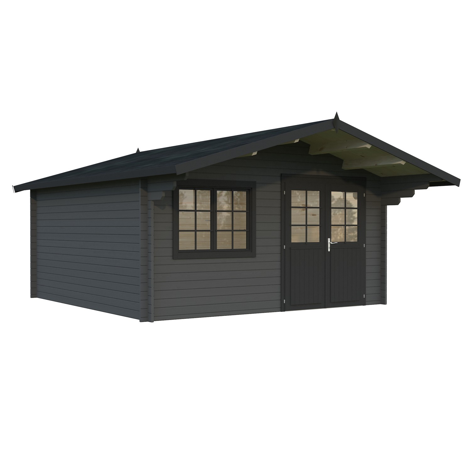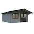 Stuga av 40 mm knuttimmer, vindtäta dubbelhaksknutar och 132 cm takutsprång över entrén. Stugan har ett spröjsat enkelfönster med vrid- och tippfunktion samt en halvglasad pardörr med limträkarm, cylinderlås och rostfri plåt som skyddar tröskeln. 5 års garanti.