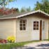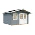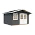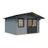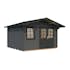 En ny stuga Caroline med modernt utseende. Stugan har utvändiga fönsterluckor som glider på två metallskenor och som kan skjutas för fönstren och skydda mot insyn eller ett besvärande solsken. Perfekt som gäststuga eller för sommarfester.