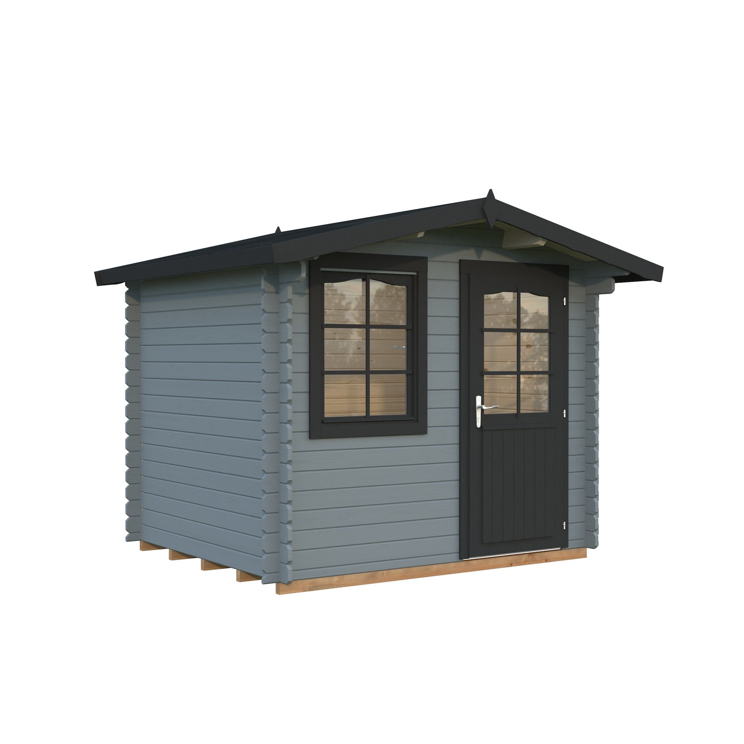 Stugan Heidi från Palmako är en modern knuttimrad stuga med ett stort fönster som ger ett härligt ljus i stugan. Även dubbeldörren har fönster ända ner till golvet, vilket ger ett ännu större ljusinsläpp och gör det möjligt att öppna upp stugan och sudda ut gränsen mellan inne och ute. En modern liten pärla som skapar ett perfekt utrymme för att samla nära och kära i din trädgård. Passar även perfekt som gästhus eller båthus.