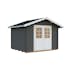 22 mm knuttimmer med vindtäta dubbelhaksknutar. Dubbeldörr med spröjsat glas och karm i limträ. Dörren har låstkista med cylinder samt en tröskel skyddad med rostfri plåt. Stugan har kraftiga, djupimpregnerade grundbalkar som ger huset stabilitet och lång livslängd. 5 års garanti.