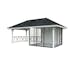 Tillverkad av nordisk gran med 120x120 mm starka limträstolpar och 19 mm takbrädor. Låsbara skjutdörrarna i 24 mm härdat dubbelglas (4 mm härdat glas - 16 mm luftspalt - 4 mm härdat glas) monterat i solida aluminiumprofiler. 28 mm väggstockar.