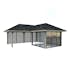 Tillverkad av nordisk gran med 120x120 mm starka limträstolpar och 19 mm takbrädor. Låsbara skjutdörrarna i 4 mm härdat glas och aluminium. 28 mm väggstockar.