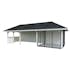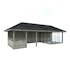 Tillverkad av nordisk gran med 120x120 mm starka limträstolpar och 19 mm takbrädor. Låsbara skjutdörrarna i 4 mm härdat glas och aluminium. 28 mm väggstockar.