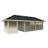 Tillverkad av nordisk gran med 120x120 mm starka limträstolpar och 19 mm takbrädor. Låsbara skjutdörrarna i 4 mm härdat glas och aluminium. 28 mm väggstockar.