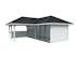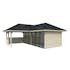 Tillverkad av nordisk gran med 120x120 mm starka limträstolpar och 19 mm takbrädor. Låsbara skjutdörrarna i 4 mm härdat glas och aluminium. 28 mm väggstockar.