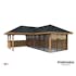Tillverkad av nordisk gran med 120x120 mm starka limträstolpar och 19 mm takbrädor. Låsbara skjutdörrarna i 4 mm härdat glas och aluminium. 28 mm väggstockar.