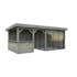 Tillverkad av nordisk gran med 120x120 mm starka limträstolpar och 19 mm takbrädor. Låsbara skjutdörrarna i 4 mm härdat glas och aluminium. 28 mm väggstockar.