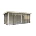 Tillverkad av nordisk gran med 120x120 mm starka limträstolpar och 19 mm takbrädor. Låsbara skjutdörrarna i 24 mm härdat dubbelglas (4 mm härdat glas - 16 mm luftspalt - 4 mm härdat glas) monterat i solida aluminiumprofiler. 28 mm väggstockar.