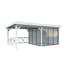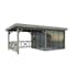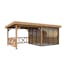 Tillverkad av nordisk gran med 120x120 mm starka limträstolpar och 19 mm takbrädor. Låsbara skjutdörrarna i 24 mm härdat dubbelglas (4 mm härdat glas - 16 mm luftspalt - 4 mm härdat glas) monterat i solida aluminiumprofiler. 28 mm väggstockar.
