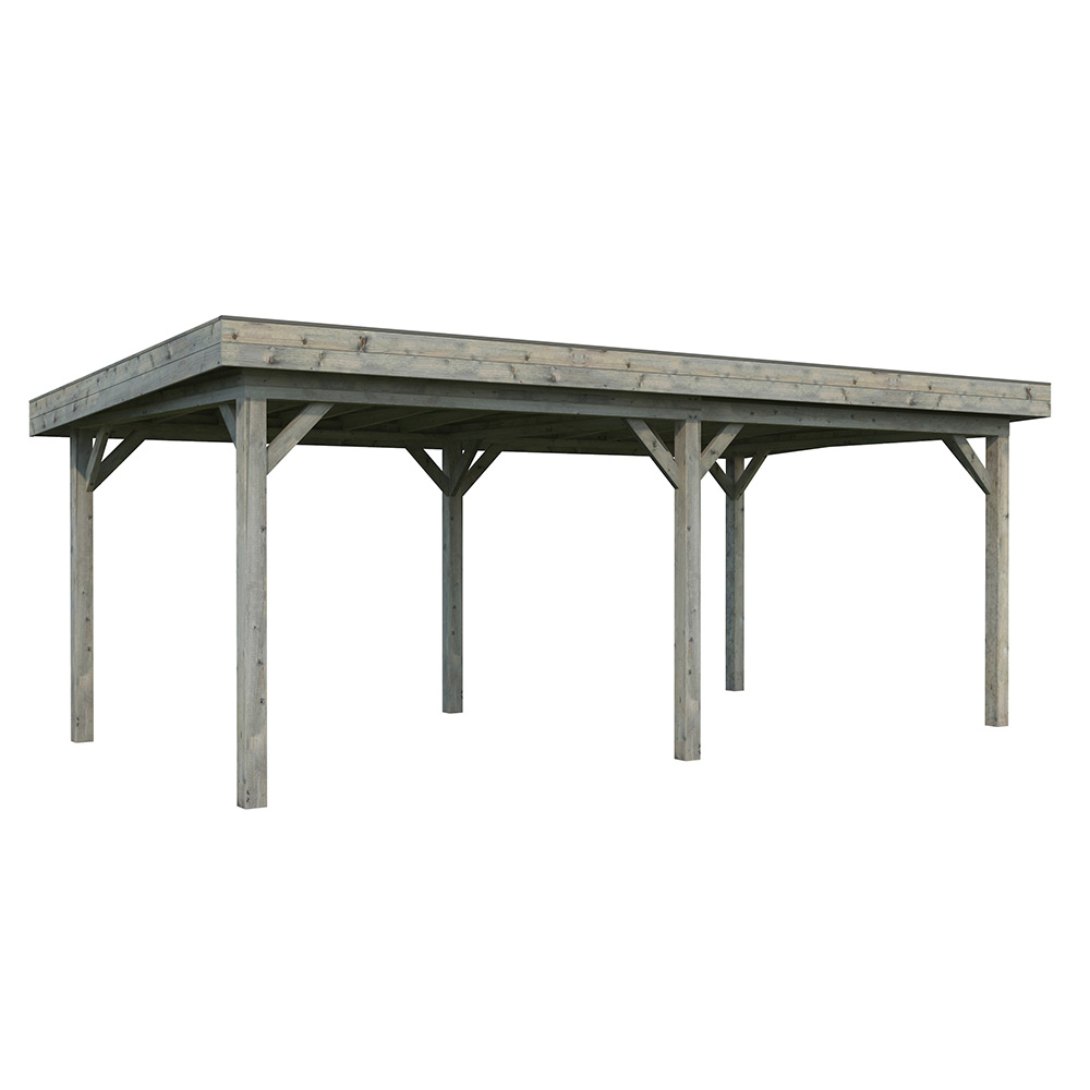 Stugan är tillverkad i långsamtväxande nordisk gran, med 120x120 mm starka limträstolpar och 19 mm takbrädor, ett hållbart material med hög kvalitet och särskilt anpassat för de svenska tuffa väderförhållandena.