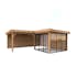 Tillverkad av nordisk gran med 120x120 mm starka limträstolpar och 19 mm takbrädor. Låsbara skjutdörrarna i 4 mm härdat glas och aluminium. 28 mm väggstockar. Rymligt skydd under tak.